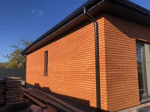 Будинок з цегли, утеплений мінеральною ватою та облицьований декоративною цеглою (або під фарбований короїд).