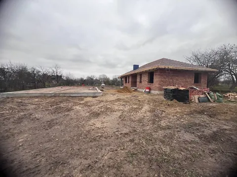 Планування: 3 спальні, кухня-студія, санвузол, коридор і велика тераса чудовий варіант для родини. Будинок в стадії покрівлі, влаштування вікон і фасаду. Маєте можливість оцінити та стати інвестором власного житла з відтермінуванням так як на ділянці поруч розпочато будівництво такого ж будинку .