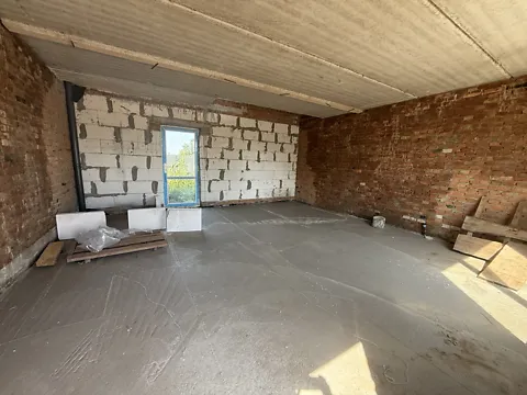 В будинку виконані всі чистові роботи, розведена електрика, вода, тепла підлога, виконана стяжка підлоги.