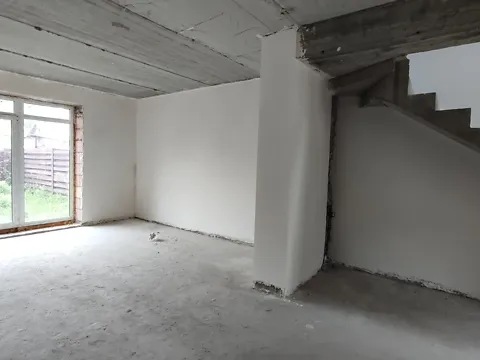 Наповнення: лазерна стяжка пілоги, гіпсова штукатрука стін, тепла підлога, розведено опалення, встановлено радіатори, розведено електрику.