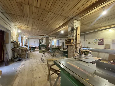 На території є: офісне приміщення, столярний цех, складські та побутове приміщення, гараж, котельня.