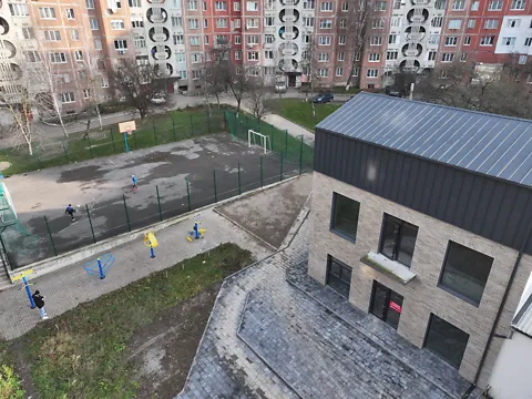 Територія облагороджена, з бруківкою та парковка поруч