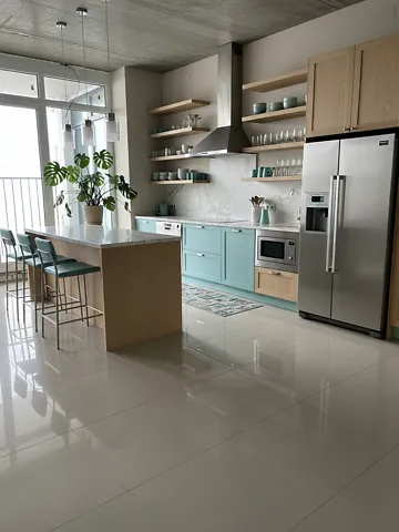 Квартира має оригінальне та водночас зручне планування: 2 великі окремі кімнати 19, 6м2 та 22, 8м2 (15, 4+панорамний балкон 7, 4), простора кухня 17, 1м2 (11, 7+панорамна лоджія 5, 4), 2 санвузла та коридор, висота до стелі 2, 8м.