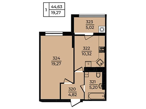 Площа житла даного планування 44.63 м².