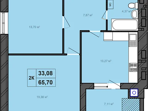 Площа житла даного планування 65, 7 м².