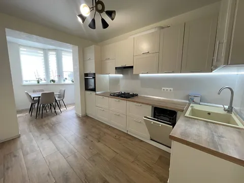 Простора лоджія від кухні, якісні меблі на замовлення, стільниця з натурального каменю