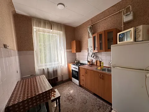 Хрущовка, цегляний будинок, квартира не кутова, тепла. Охайний житловий стан, металопластикові вікна, нова газова колонка (гаряча вода 24/7). Залишається кухня і шафа-купе в кімнаті. Зручне розташування, хороша транпортна розв'язка, поряд багато магазинів, супермаркет АТБ, Тетра, школа і дитячий садочок в пішій доступності.