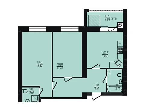 Площа житла даного планування 69.32 м².