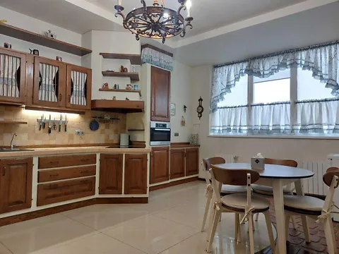 Пропонується простора, світла квартира, вдале планування, п'ять повноцінних спалень, відкрита гостьова кімната, кухня-студіо, три санвузли, 1-й (душова кабіна), 2-й (джакузі та сауна), 3-й (гостьовий санвузол + пральна та сушильні машини), в кожній кімнаті кондиціонування. Повна комплектація меблями, побутова техніка "SIEMENS", "BOSH", бойлер, інтернет. Якісний ремонт в класичному стилі, паркет, дерев'яні меблі. Гарна інфраструктура, поруч кафе, бари, магазини, відділення банків.