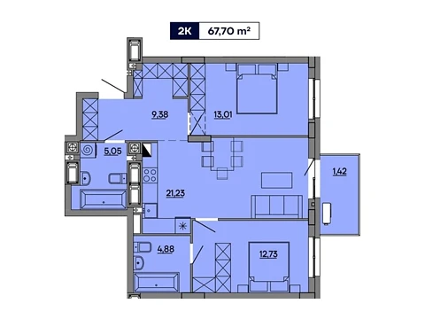 Площа житла даного планування 67.7 м².