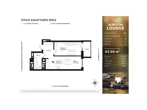 Квартира розташована на 6 поверсі 7-и поверхового будинку. Адреса новобудови  - Львів, рн Шевченківський, Заозерний.