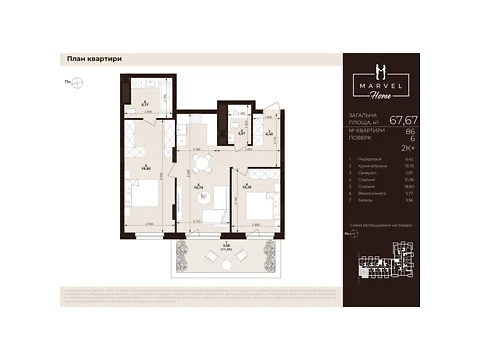 Сучасне планування площею - 67.67 м² створене саме для комфорту і затишку.