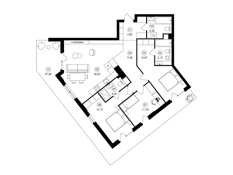 Площа житла даного планування 80.88 м².
