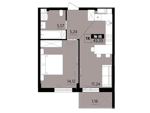 Площа житла даного планування 43.33 м².