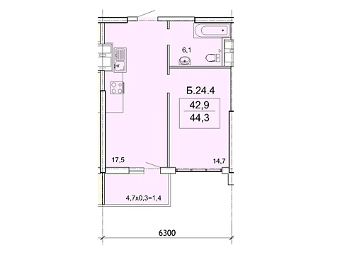 Площа житла даного планування 44.3 м².