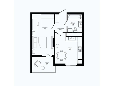 Сучасне планування площею - 42.89 м² створене саме для комфорту і затишку.