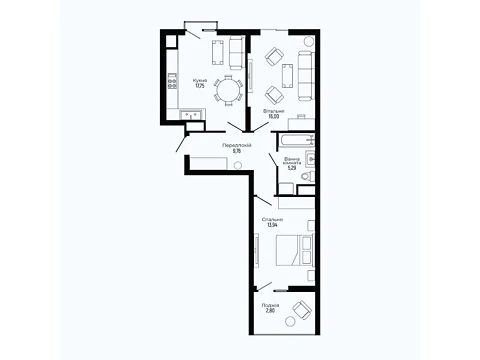 Площа житла даного планування 87.54 м².