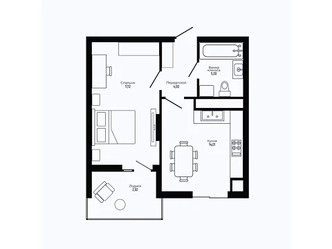 Площа житла даного планування 42.94 м².