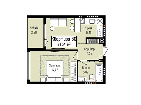 Площа житла даного планування 41.64 м².