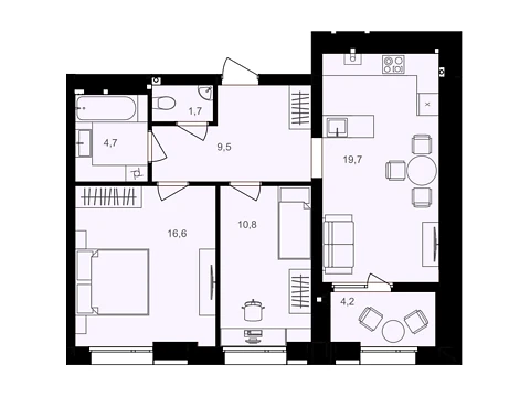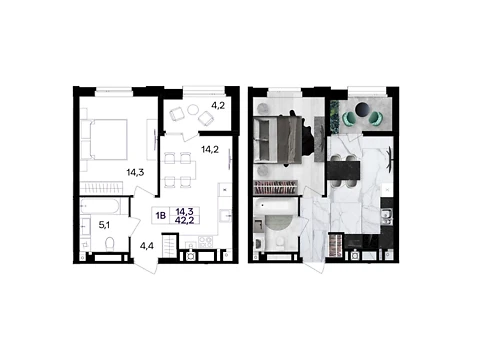 Сучасне планування площею - 42.2 м² створене саме для комфорту і затишку.