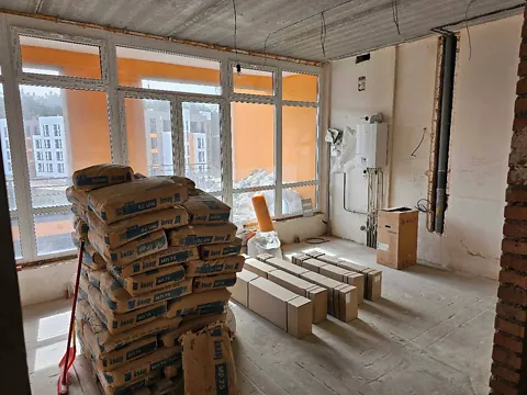 Гіпсова штукатурка стін та лазерна стяжка підлоги. Квартира готова для реалізації Ваших дизайнерських задумів.
