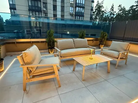 LED-освітлення, меблі для відпочинку, подушки з чохлами