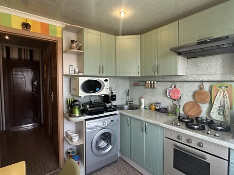 Залишається: водонагрівач, пральна машина, холодильник, диван, вбудовані меблі кухні.