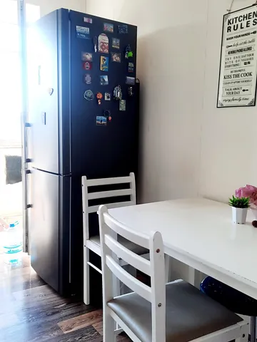 Затишна, тепла, не торцева квартира, житловою площею 17, 5 м2, продається з технікою (кондиціонер, холодильник; пральна машинка - за домовленістю) та меблями.