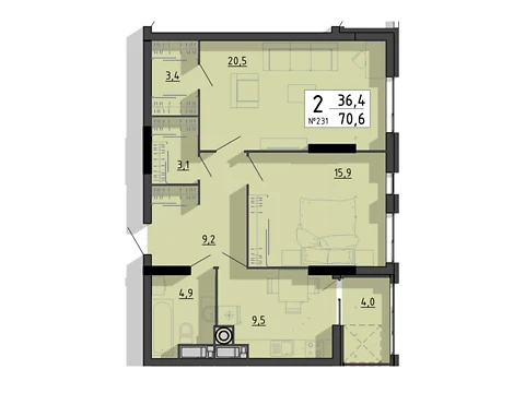 Площа житла даного планування 70.6 м².