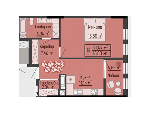 Сучасне планування площею - 50.47 м² створене саме для комфорту і затишку.