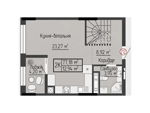 Сучасне планування площею - 43.16 м² створене саме для комфорту і затишку.