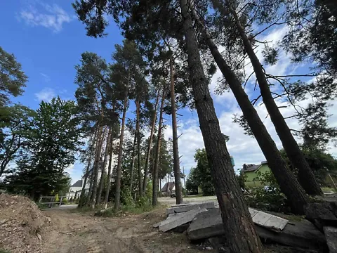 Ділянка рівна, правильна геометрична форма, на ділянці є сосни.