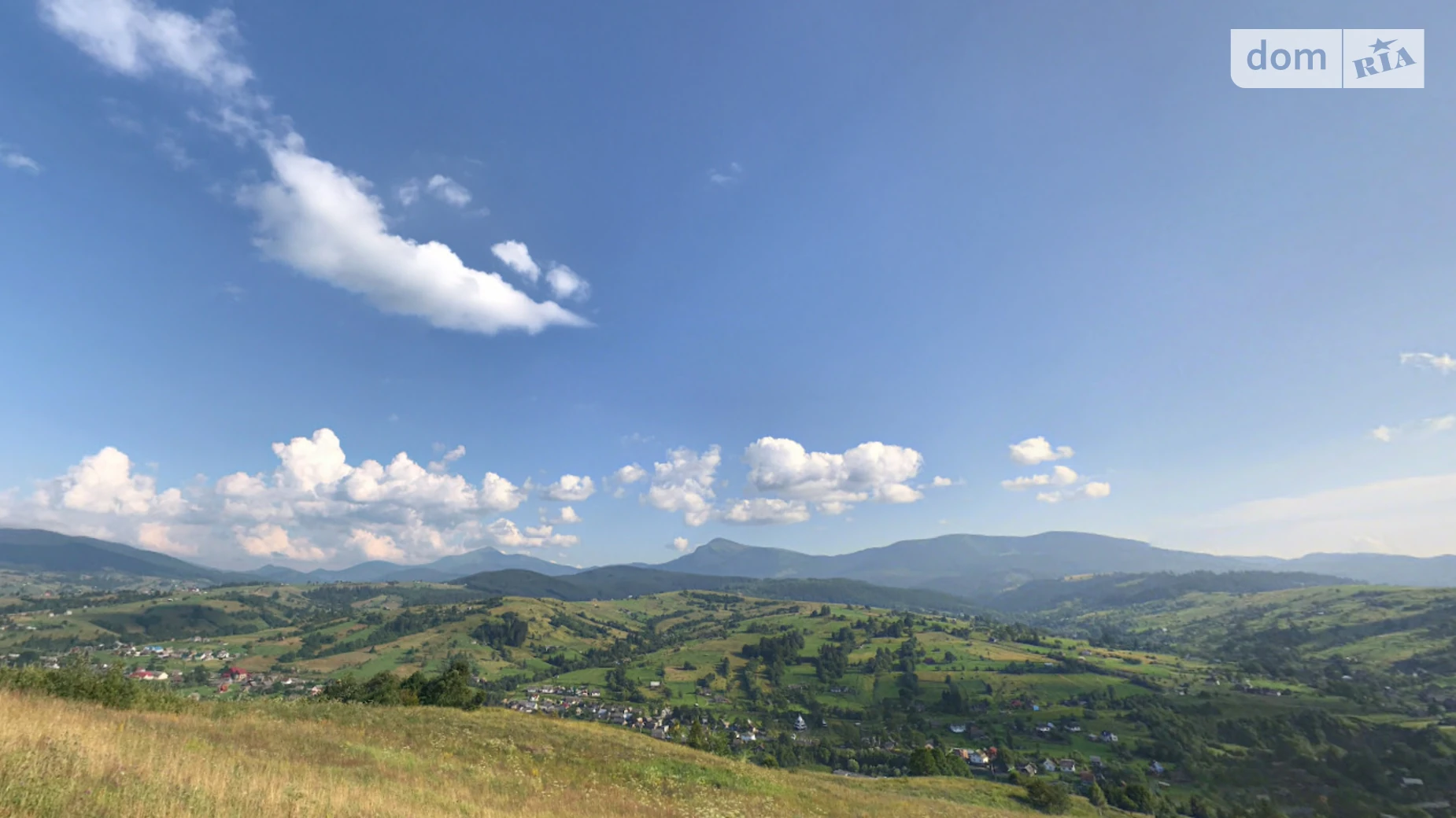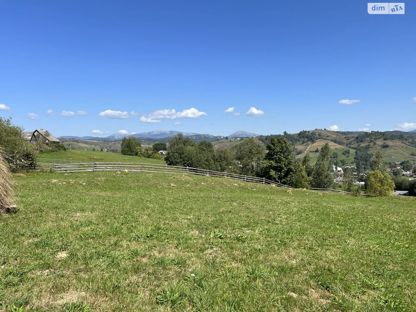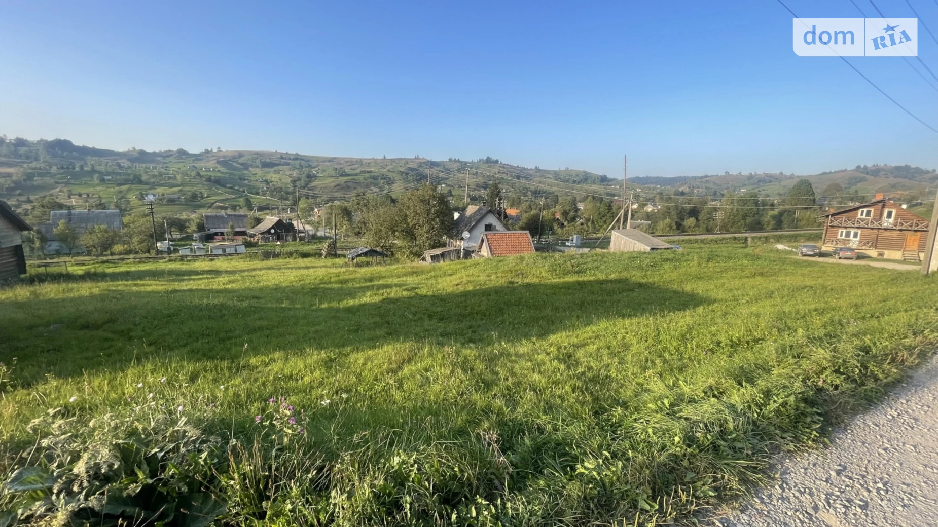 З ділянки гарний краєвид на гори. Поруч річка. Грунтова дорога.