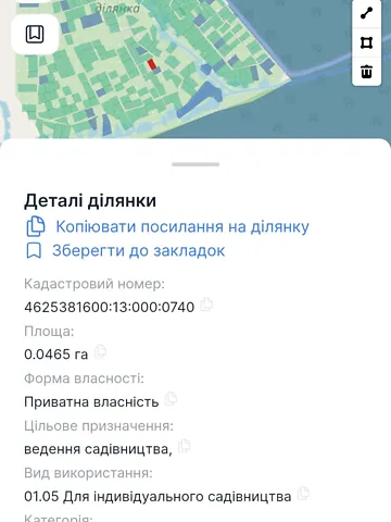 Земельна ділянка з цільовим призначенням під садівництво.