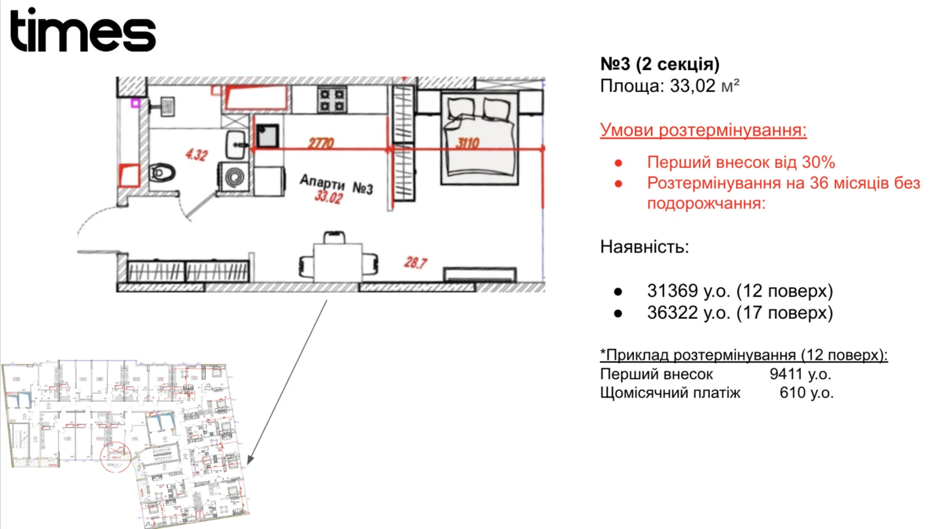 43 000 $ 956 $ за м²