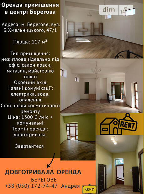 - Оренда приміщення в центрі Берегова +XXXXXXXXXXXX