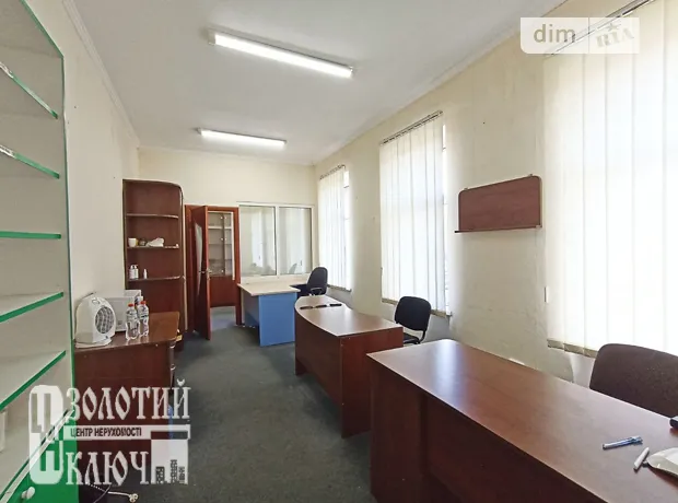 Приміщення Площею 30.1 м.кв., правильної прямокутної форми 2 кабінети (один з них прохідний), три вікна в більшому і одне вікно в меньшому. Цілодобовий доступ. Санвузол на поверсі. Без опалення. Меблі як на фото.