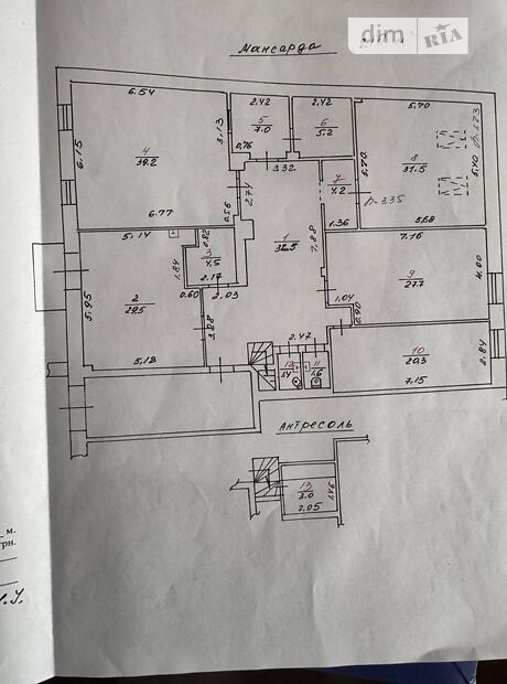 Приміщення складається з 5 більших кімнат і 3 менших, двох санвузлів та невеликої кухні