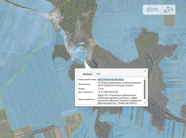 - Продаж права оренди (річної орендної плати) земельної ділянки несільськогосподарського призначення, площею 1,8000 га, кадастровий номер: 4623381000:02:000:0652, що розташована за адресою: Львівська область, Львівський район, за межами населеного пункту с. Боршів, категорія земель – землі житлової та громадської забудови, цільове призначення – для будівництва та обслуговування об’єктів фізичної культури і спорту (КВЦПЗ – 07.02)