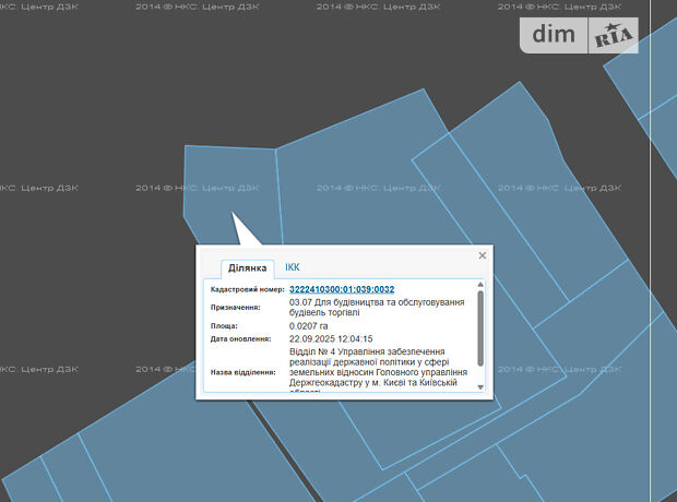 - Кадастровий номер 3222410300:01:xx9:0xxx