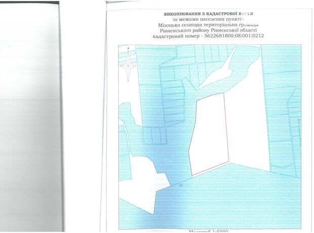 - Земельна ділянка за межами населених пунктів Мізоцької селищної ради Рівненського району Рівненської області 4,8965 га