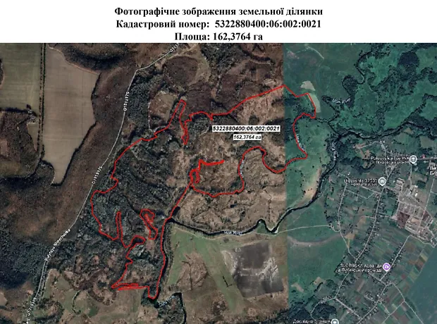 - Загальна площа 162.3764 гектара
