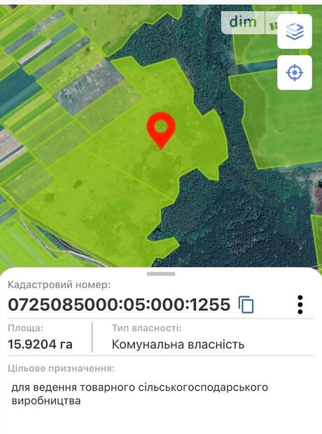 Оренда землі сільськогосподарського призначення, площа 15.9204 Га • ID 33755515