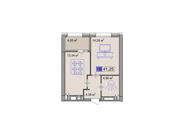 - Загальна площа 41.25 м²