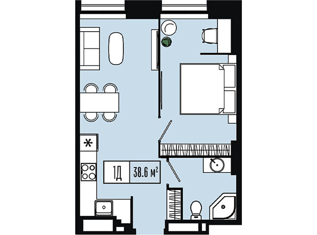 - Загальна площа 38.6 м²