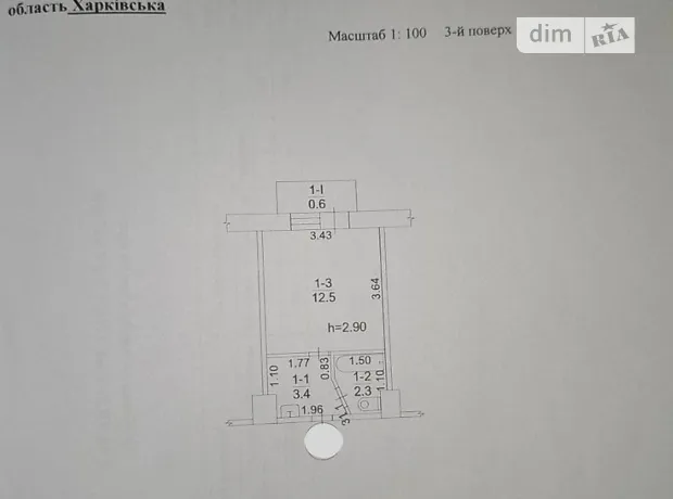 - 1 кімната · 3 поверх з 4