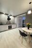 Вмонтована кухня новітнього зразка (укомплектована гарнітуром та побутовою технікою), точкове освітлення, додаткова розводка електрики, натяжна стеля, якісна сантехніка, вбудована система інсталяції санвузла, брендова техніка.