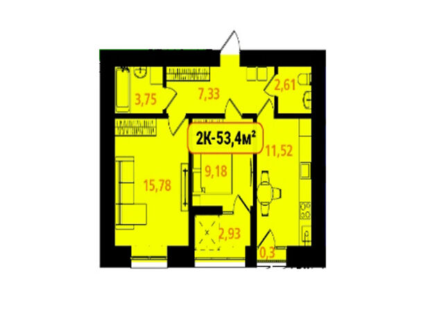 Площа 53.4 м²