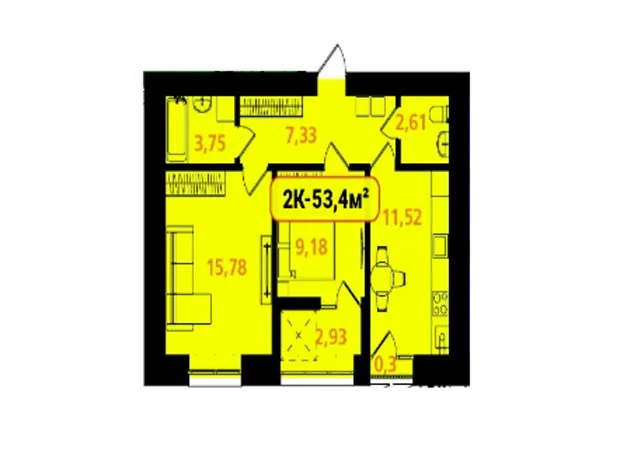 - Загальна площа 53.4 м²