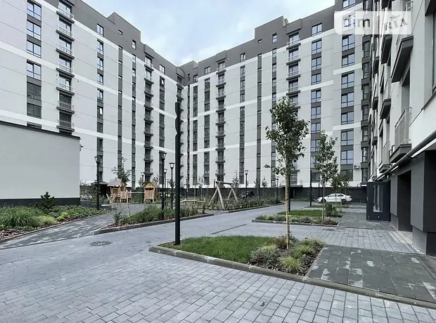 Внутрішній двір із сучасними дитячими та відпочинковими майданчиками.
